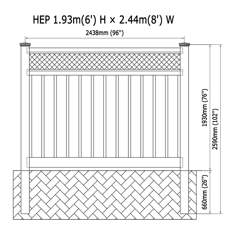 Çit, önceden çıplak bir alt ray (2 "x 6" x 94 "), orta ray (2" x 3-1/2 "x 94") ve bir üst ray (2 "x 3-1/2" x 94 ") içeren dayanıklılık için inşa edilmiştir. Her bölüm, 11.8" x 90.8 "lattice üstü, bir dib-chelacy, bir dib-chelacy tayinini içerir. Yapısal bütünlüğünü arttırarak elementlere karşı güçlü olmasını sağlayın.