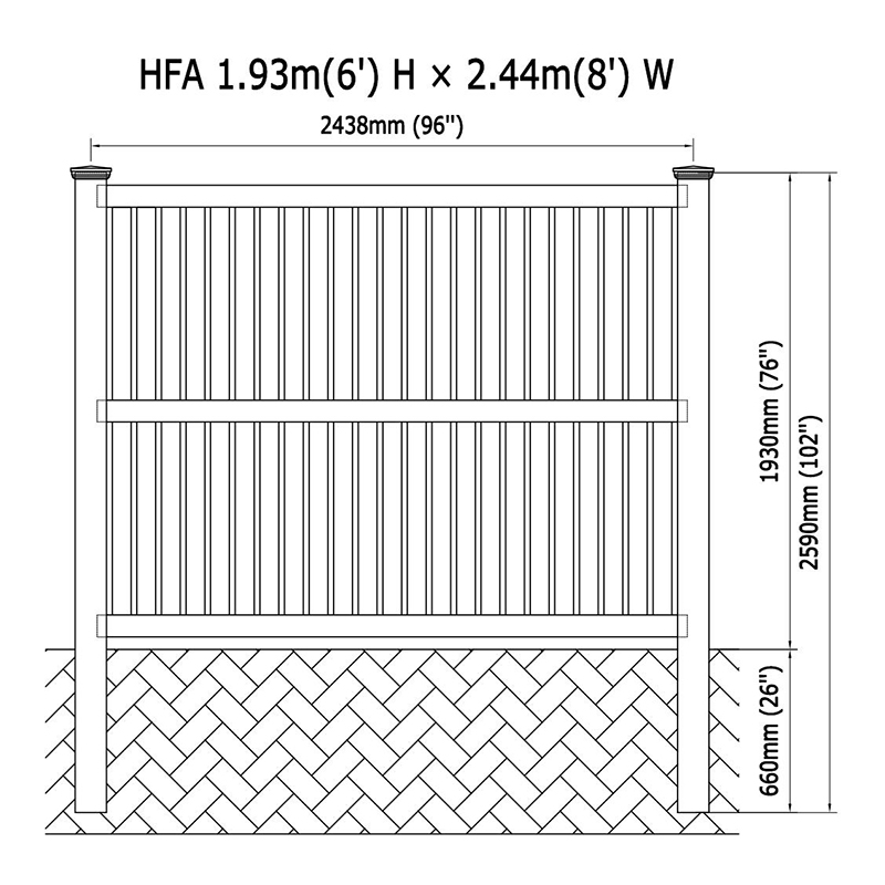 Farklı yükseklikler için özelleştirilebilir seçeneklerle 72 inç standart bir yükseklikte duran çit, ışık ve havanın akmasına izin verirken davetkar bir bariyer oluşturur. Her panelin standart genişliği 96 inçtir, ancak benzersiz ihtiyaçlarınıza uyacak çeşitli genişlik seçenekleri sunar.